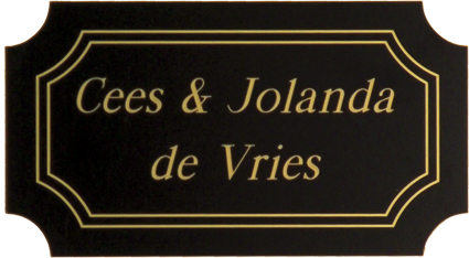 Het kunststof dat gebruikt wordt is een harde soort plastic (standaard 1,6 mm dikte), welke uitstekend geschikt is voor gebruik in en rondom uw woning. De tekst wordt in alle kunststofnaamborden gegraveerd, waardoor uw naam niet weg kan slijten of vervagen. De kunststofnaamborden bestaan uit twee kleuren: een onderliggende grondkleur en een bovenliggende topkleur. Wanneer uw naam in het naambord gegraveerd wordt, wordt de topkleur weg gegraveerd en verschijnt uw naam in de onderliggende kleur. Kunststof wordt standaard met een zelfklevende plaklaag geleverd. Daarmee kan het op vrijwel elke vlakke achtergrond gemakkelijk bevestigd worden. Het is echter niet geschikt om op een stenen of andere ongelijke achtergrond te bevestigen!